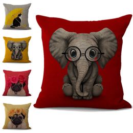 Elephant Cat Animal Pillow Case Cushion Cover Linen Cotton Throw Square Pillowcase Cover Home Decorative Drop Ship 300787