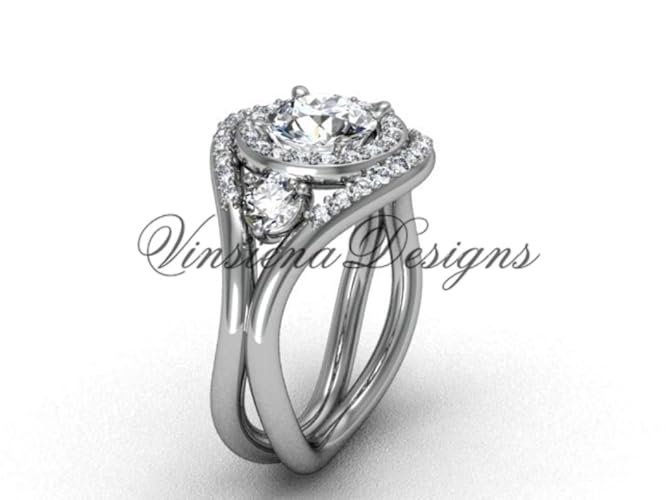 Amazon Com Unique 14k White Gold Diamond Wedding Ring