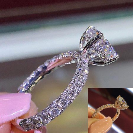 Women S Copper White Gold Plated Micro Inlaid Cubic Zircon Engagement Ring