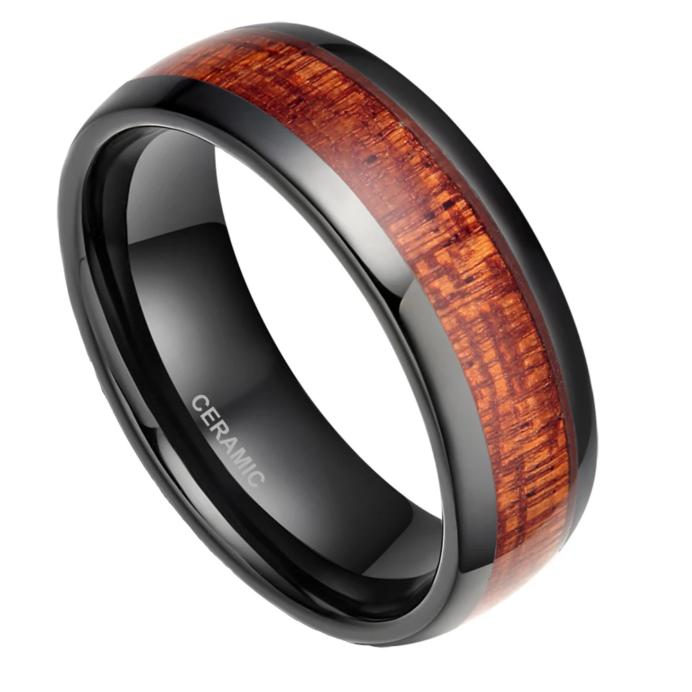 Us 10 98 35 Off 8mm Men S Black Ceramic Ring Mahogany Wood Inlay Polished Mens Wedding Rings Comfort Fit Engagement Bague Homme Jewelry In
